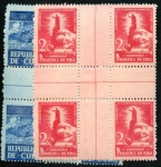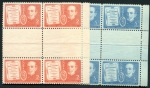 Scott: 359-60 ($15.00) Edifil: 334CH & 335CH (30.00€) Set in CENTER BLOCKS of four. Light hinge with original gum.