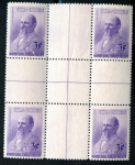 Scott: 399-401 ($3.00) Edifil: 364-366CH (32.00€) Set in CENTER BLOCKS of four. Used never hinged.
