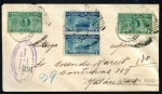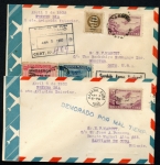 Scott: C12 Two covers sent on First day of issue. One sent registered. The second with DEMORADO POR MAL TIEMPO marking.