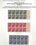 Lot #407 | Year: 1936 Scott: 324-331, C18-21, CE1, E8 ZONA FRANCA PROOF SET OF GUTTER PAIR BLOCKS OF FOUR. With large hole punch. Only 100 stamps printed of each value. Very rare. |