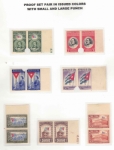 Lot #419 | Year: 1951 Scott: 458-61, C41-43, E13 IMPERFORATE PROOF PAIRS. In issued colors with large and small punch holes. |