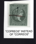 Lot #11 | Year: 1855 Scott: 1 var ($7.50) Edifil: Ant 1 it (10.00€) "CORRFOS" variety. Used, hinge mark. |