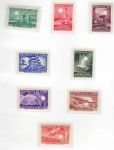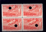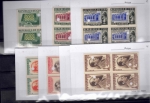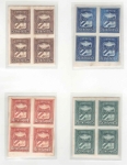 Lot #540 | Year: 1936 Scott: 324-331, C18-21, CE1, E8 ZONA FRANCA PROOF SET OF GUTTER PAIR BLOCKS OF FOUR. With large hole punch. Only 100 stamps printed of each value. Very rare. |