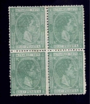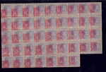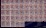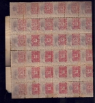 Scott: 106 ($125.00) Edifil: 77a, 80a Block of 43 , plancha 4. Unused never hinged with minor separation of one stamp.