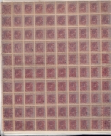 Scott: 106, 109, 112, 115, 118 Sheet of 100 unused with separations repaired with hinges on rear. Plancha 5a. Original gum.