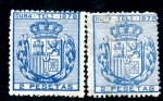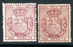 Edifil: T35 & 35a (7.00€) Both color varieties of the 1 peseta value unused but hinged.