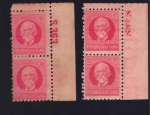 Scott: 265 ($4.00) Two pairs with plate block numbers. Unused never hinged with original gum.