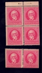 Scott: 265a ($75.00) Booklet pane of six. Unused but reinforced by hinges.