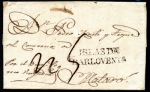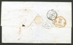CORREOS MARITIMOS No.3 poorly struck marking on letter to Barcelona. Receiving FRANCO marking.