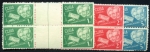 Scott: 399-401 ($3.00) Edifil: 364-366CH (32.00€) Set in CENTER BLOCKS of four. Used never hinged.