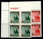 Lot #421 | Year: 1957 Scott: 588-9 ($24.00) Complete set in blocks of four unused never hinged with original gum. |