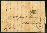 Gibraltar to Habana with black Empressa "NE" (Northern Europe) type 58 (RR) incoming transit mark. Hand stamped on reverse with fancy "E" in circle Empressa Type 41 (for mail from Spain). Both markings applied in Cuba.