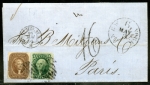 Forwarding agent cover form Habana to Paris with, on the reverse, sender's cachet and oval EDWARD THEBAULD;S SONS/NEW YORK fwding agent endorsement. Added 1857-61 5c brown and 10c green with NEW YORK cds alongside, ET UNIS SERV.BR.C and hand struck "16" arrival rating.