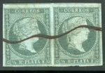 Scott: 1 var Edifil: Ant 1id (4.50€) "COINCIDENT LOOPS" watermark variety on pair. Used with hinge mark.