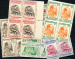 Scott: 463-5, C44-46 & E14 ($300.00) Blocks of four with no gum. Never hinged.