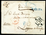 CORREO MARITIMO No. 6, Matanzas BAEZA and ornate FRANCO markings on letter to Barcelona.