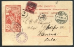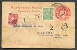 Scott: 221, 224, 225 Letter to Spain paying the Spanish rate of 6c plus 8c registry charge. Stamps cancelled with crude oval cancel "Mil. Sta. No.1 Santiago" Straight line registry marking type 3. Ex Kouri collection.