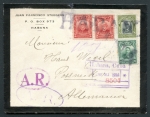 Scott: 263 Pair on registered cover from Habana to Paris. Back of envelope trimmed.