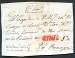 Letter from Habana to Guayra, Venezuela dated 12 January 1794. No postal markings.