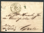 Letter from Matanzas to Boston via Habana and New York. Letter is from a merchant to his wife back home.