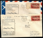 Aerial Train Experiment first flight May 19th. Habana to Miami. Pair of covers one perforated and one imperforated One with signatures of pilots.