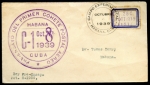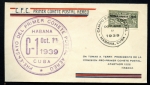 Aerial Train Experiment. Sarria Catalog 1935ff1 Miami to Habana flight with stamp cut out because air service was was not authorized in Cuba.