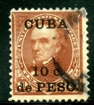 Scott: 221 var Variety broken "A" of "CUBA" in right side. Position 70. Used never hinged.