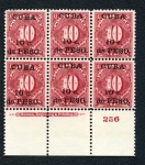 Scott: J1 ($660.00) PLATE BLOCK OF 6. Unused hinged on selvage only with original gum.