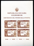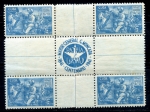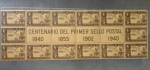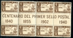 Scott: C32 Center Block of 14 of the Centenario del Primer Sello Postal issue. The top four stamps have hinge remains and the rest no hinges. Very good gum.