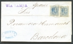 Scott: 130 Edifil: 103 (30.00€) Pair on cover to Barcelona.