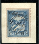 Edifil: 5 CORREO INSURRECTO. Used copy on piece with rare genuine purple cancel and fake "Oriente" flag cancel.