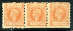Scott: 169 ($18.00) Unused strip of three never hinged and with original gum.