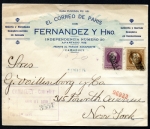 Scott: 267 On letter to New York with Amado Paz y Cia. Envelope.