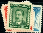 Scott: 318 Strip of five on letter from former President of Cuba, Grau San Martin, with his signature.