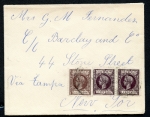 Scott: 163 Edifil: 161 (25.00€) Trip of three on cover to New York.