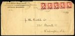 Scott: 223 Strip of five on privately used Official Mail envelope from Habana to Washington, DC. It is double weight letter cancelled by Spanish colonial cancelling device. It is addressed to famous stamp dealer J.M.Bartels.