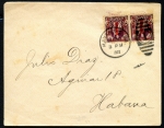 Lot #206 | Year: 1899 Scott: 225 Pair on double weight letter to New York. Sent from Cienfuegos. |