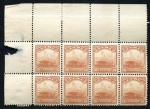 Lot #217 | Year: 1902 Scott: 232 Edifil: 174 (60.00€) Plate Block of eight with extra printing on selvage. Unused never hinged and with original gum. |