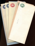 Edifil: 51, 55, 58 SPECIMEN overprints on legal size envelopes of the three values 1c, 2c, 5c in four different color envelopes for a total of twelve items. All unused.