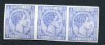 Scott: 69a ($100.00) Edifil: 37s (145.00€) IMPERFORATE STRIP of three. Unused never hinged with original gum.
