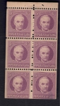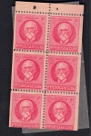 Scott: 234a ($175.00) Booklet pane unused. Perforations repaired with hinged on back.