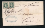 Lot #69 | Year: 1864 Scott: 18 Edifil: Ant10 (11.50€) Pair on cover to Cadiz. |