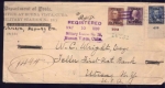 Scott: 223, 225, 226 MIL. STA. NO 26. BUENA VISTA. Privately used Department of Posts penalty envelope sent registered. Quintuple wight rate (2 cents x 5- 10 cents + 8 cents registry fee = 18 cents.