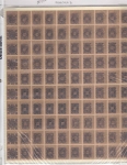 Scott: 107, 110, 113, 116, 119 ARANITAS. Sheet 6 containing 100 of the 10 cent values with types A, B, C, D, E. Unused never hinged with original gum.