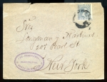 Scott: 130a ($175.00) Used on letter to New York. Faulty stamp. Via Steamer Saratoga.