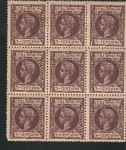 Scott: 163 Edifil: 161/162hz Block of 9 with variety "dash under hyphen between '3' and 'C' ". Unused, never hinged with original gum.