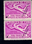 Lot #407 | Year: 1936 Scott: 324-331, C18-21, CE1, E8 ZONA FRANCA PROOF SET OF GUTTER PAIR BLOCKS OF FOUR. With large hole punch. Only 100 stamps printed of each value. Very rare. |