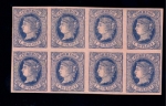 Scott: 12 ($50.00) Unused irregular block of 8 with pair attached with hinges. Original gum.