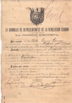 REVOLUTIONARY PERIOD. Document from the "La Asamblea de Representantes de la Revolucion Cubana" awarding an individual a Prefecto status.