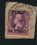 US MIL.STA.NO.27 - MATANZAS. Cut piece with grossly deformed handstamp after about four months of use